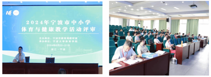副院长赵亮、体育学系主任王东石以及宁波市各县市区的20余名体育教研员、教学名师和33名参赛选手。评审活动由宁波市体育教研员马杨旭主持。