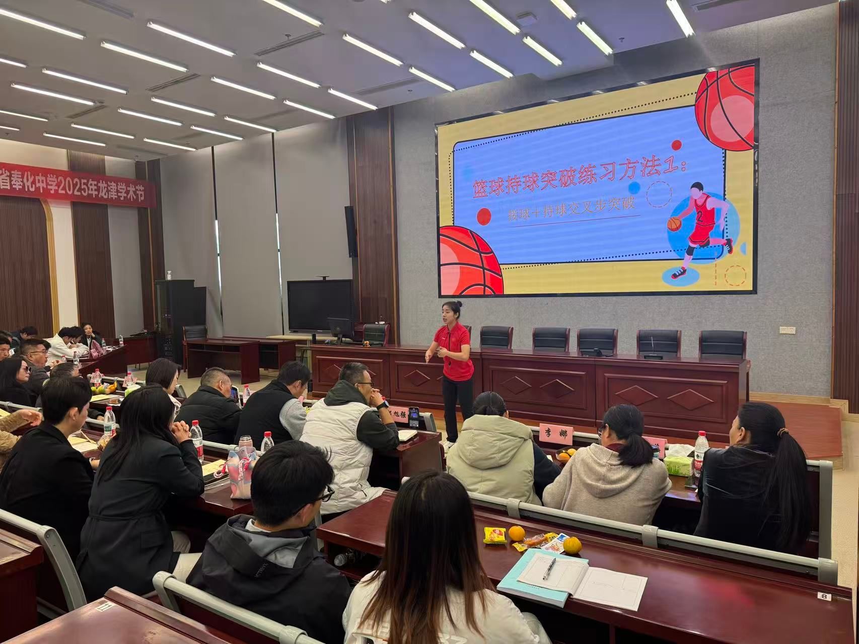 党委书记童莹娟,党委副书记胡秋丽,以及来自绍兴和湖州等地市的教研员专家、奉化中学领导班子出席活动。各实习基地指导教师代表及我院师生代表共聚一堂,共研体育师资培养新路径,通过“把脉问诊”与“实战演练”,共同推动体育教育专业建设迈向更高水平。