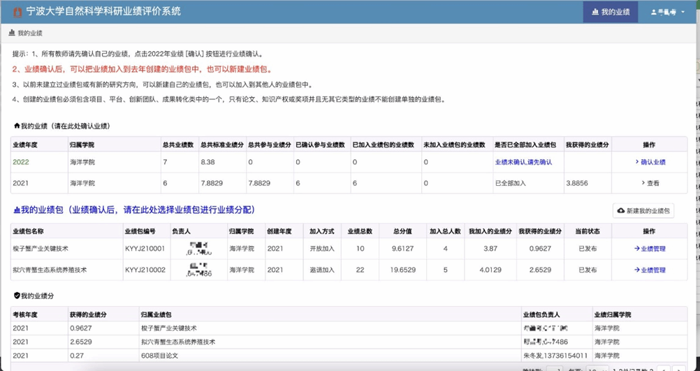 本人的科研业绩确认完成后,就可以进行业绩包的创建,也可以加入到自己或者别人创建的业绩包中。