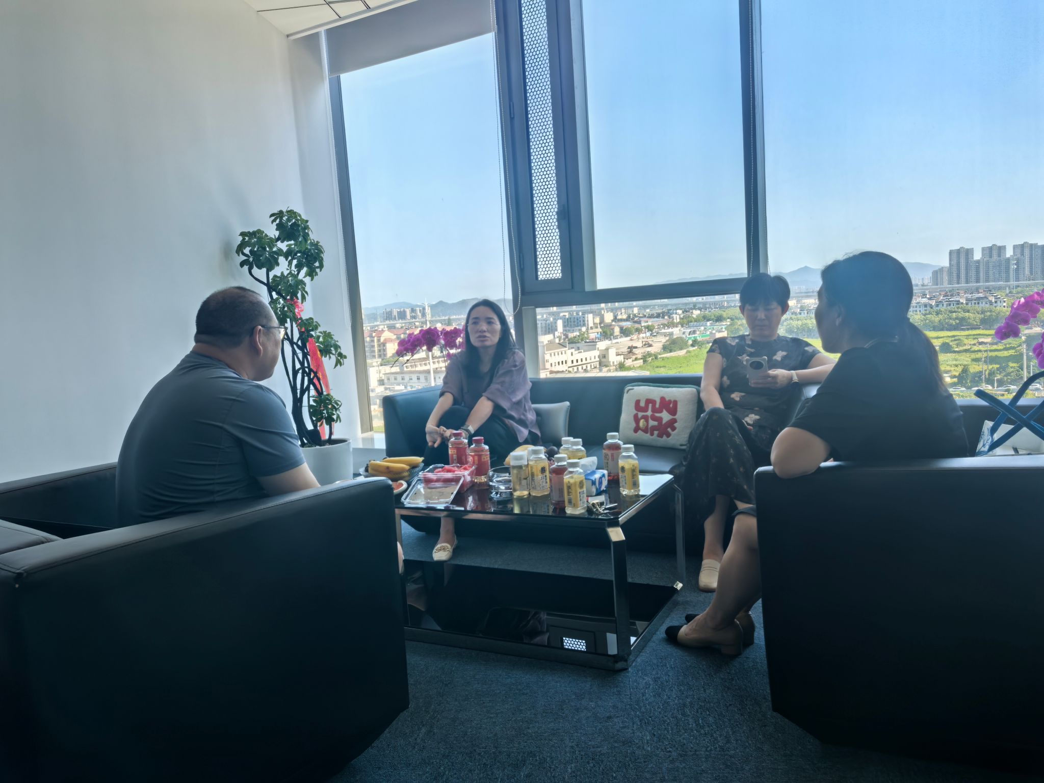 7月3日下午,色情网 党委书记童莹娟、党委副书记胡秋丽、学院校友办主任顾慧亚及校乒乓球队教练邵诗蕊一行走访2012级校友耿浩文、现任宁波达麦网络科技有限公司负责人,并就深化校企业合作、加强校友联络等议题展开深入交流。