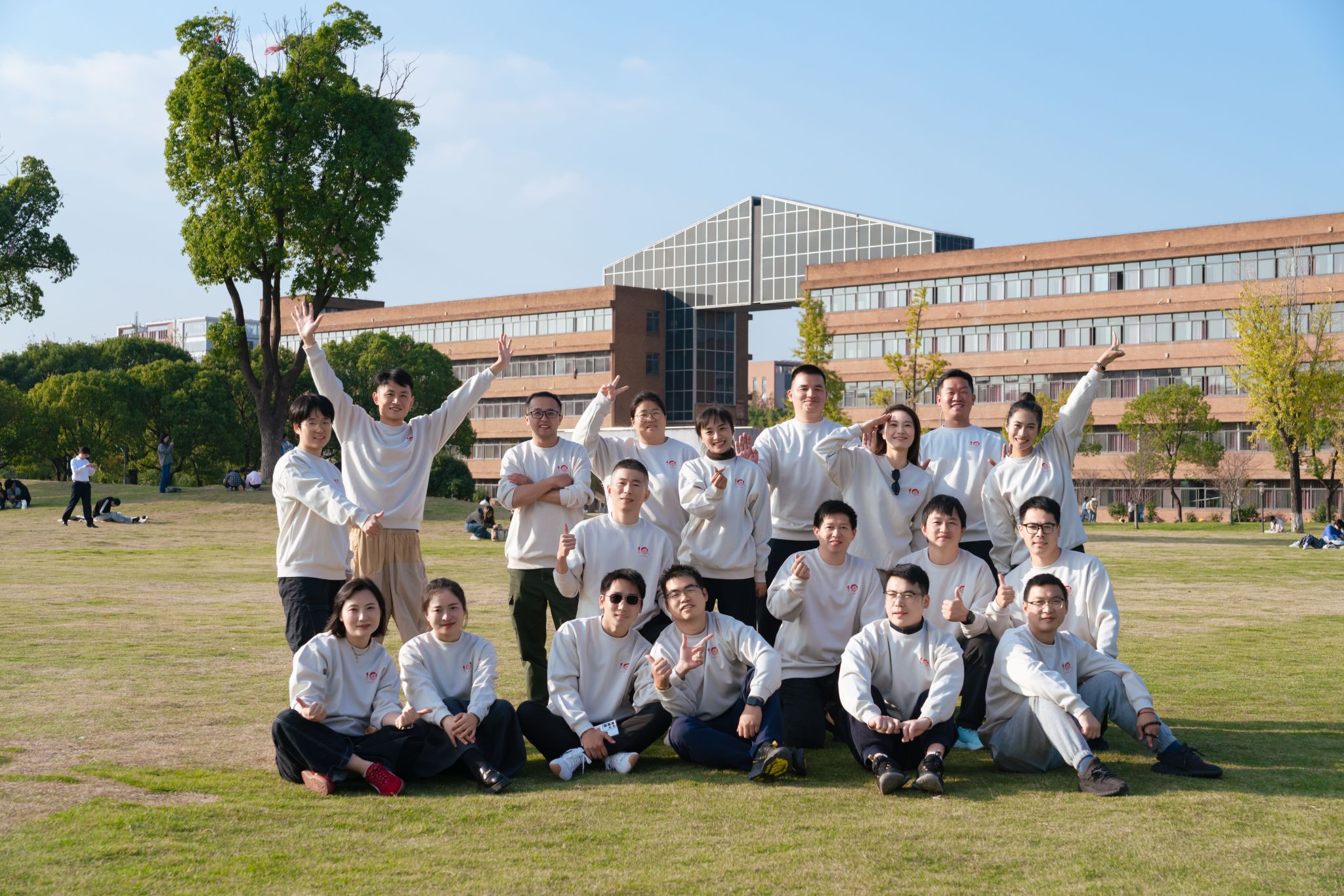 随后,大家换上统一班服,踏上“校园寻梦”之旅。队伍从报到处出发,漫步于绿荫掩映的天使之路,穿过寓意深远的南天门,最终齐聚于宽阔的大草坪合影留念。秋阳和煦,每一步都踏在回忆的坐标上,每一处景致都在轻声诉说当年的故事,仿佛时光从未走远。
