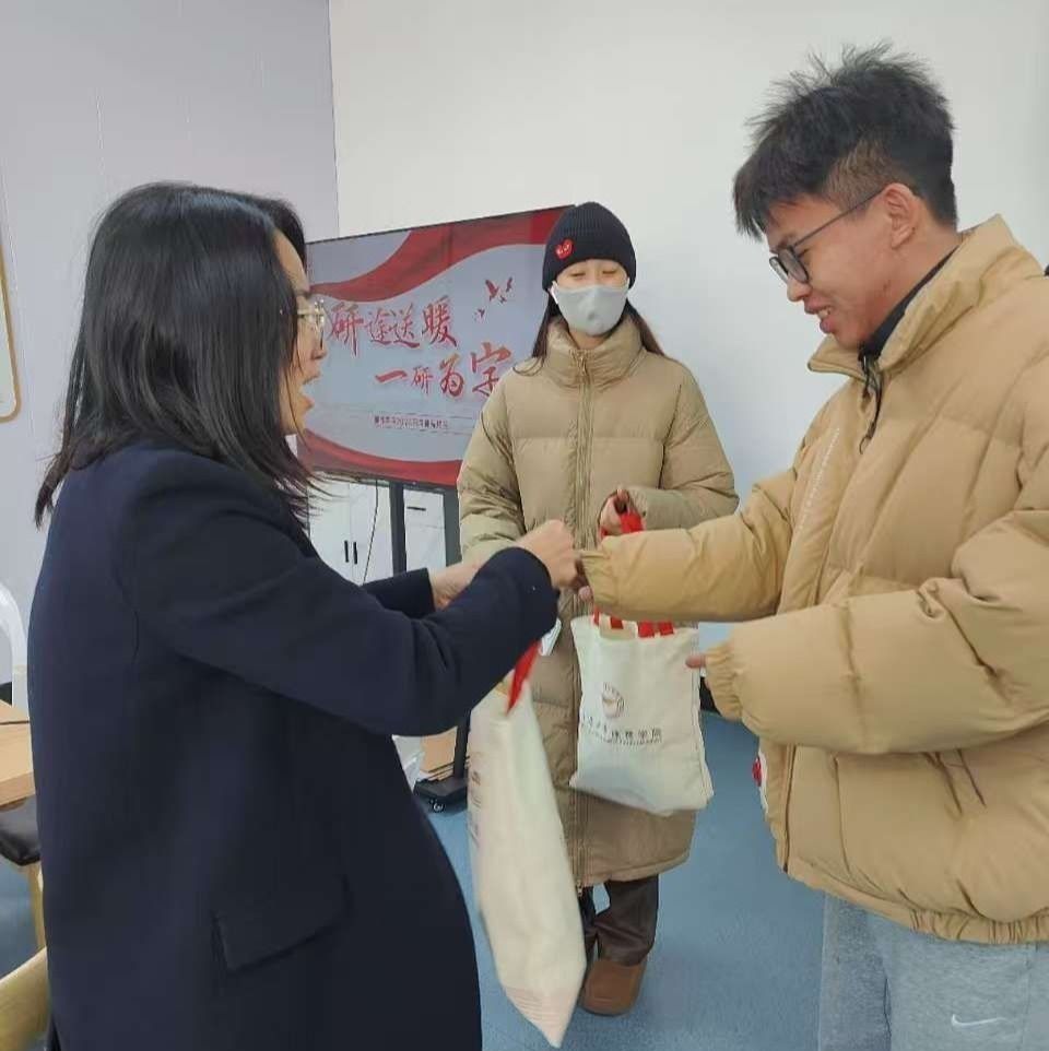 活动现场,学院党委副书记、纪委书记胡秋丽、团委书记陈英英、班主任代表张妍老师向考研学子赠送了精心准备的“暖心礼包”,礼包内包括水杯、U盘、书签,表达了学院对考研学子的美好祝愿。