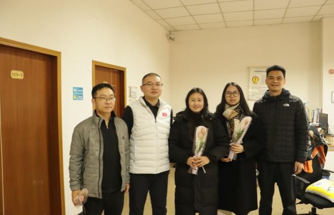 党委书记童莹娟、副院长任峰、副书记胡秋丽、党委委员孙冬和刘维,于3月7日上午走进学院各办公室、实验室和学生自习室,向坚守岗位的女教工和女学生们献上鲜花与节日祝福,以“走心式慰问”传递“家文化”温暖。